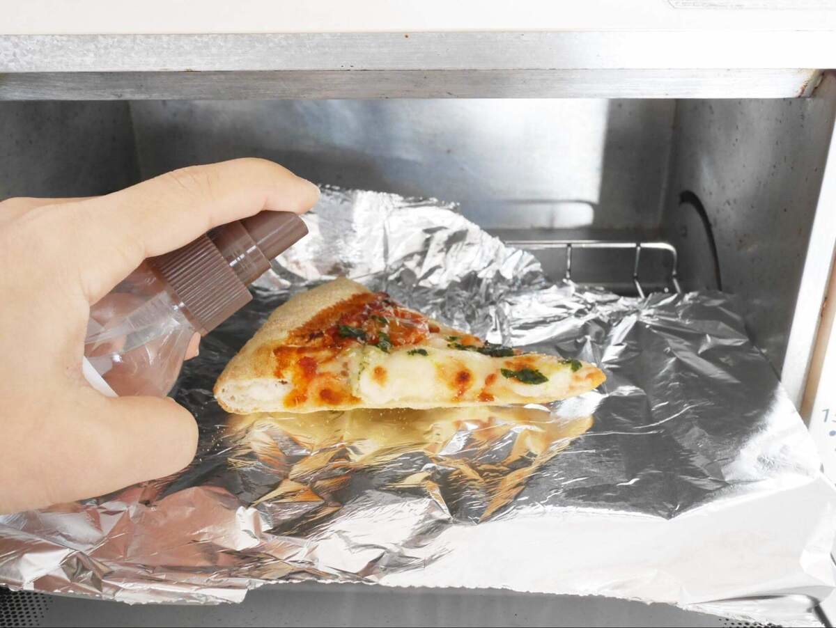 このとき、水を吹きかけてから焼くとピザ生地のふわふわ食感が復活します。