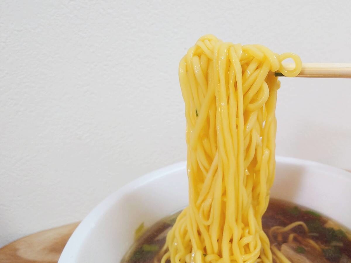 カップラーメンの麺は蒸すことが多いそうですが、佐野らーめんは、蒸さずにもちもちコシのある食感を出すために独自製法で麺を茹でています。