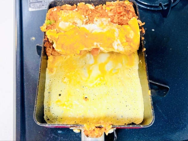 そんなたみさんのオムライス、今回使うのは丸いフライパンではなく、卵焼き器なんです。