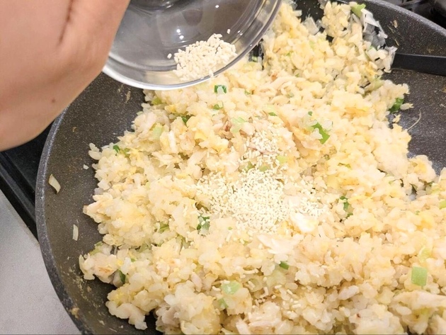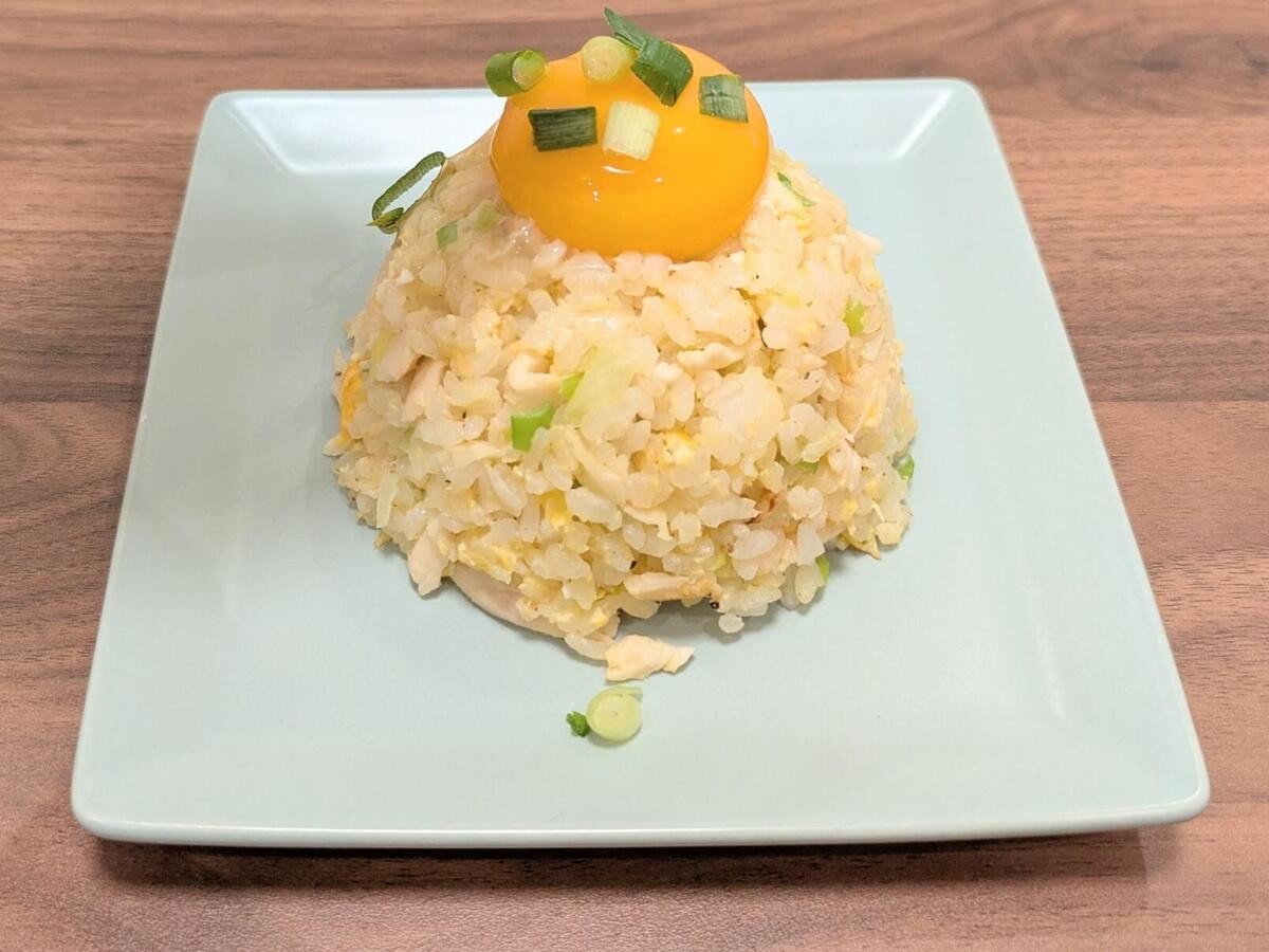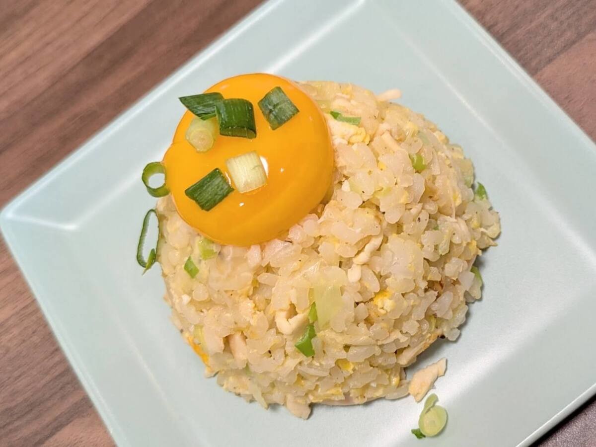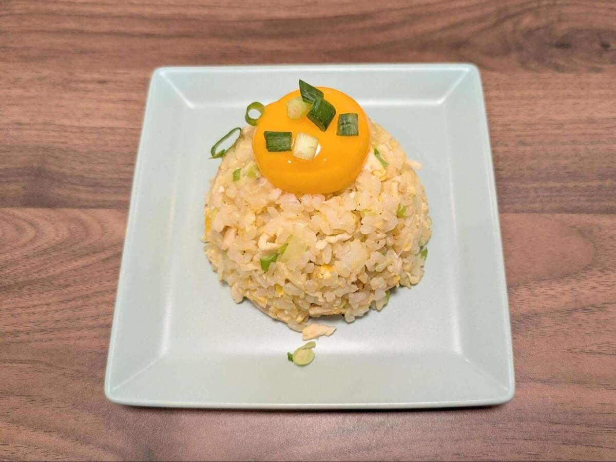 ツヤツヤの卵黄が美しいチャーハンの完成!
