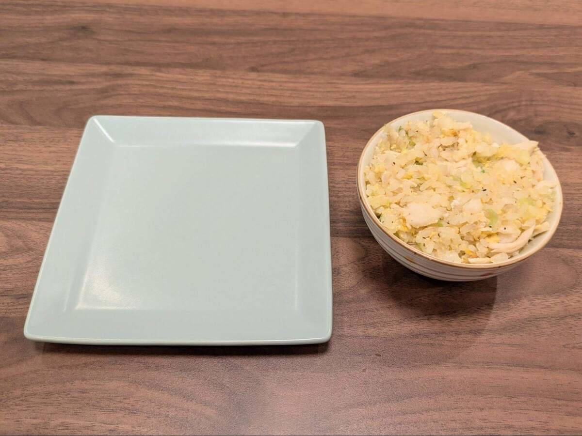 盛り付けたいお皿を用意して、お茶碗の隣にセット。