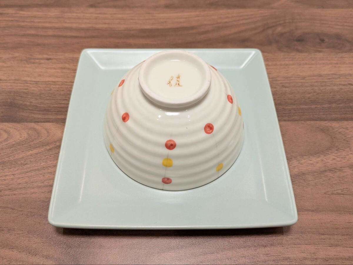 最初に盛り付けたいお皿をお茶碗にかぶせ、それからひっくり返します。どきどきの瞬間です!