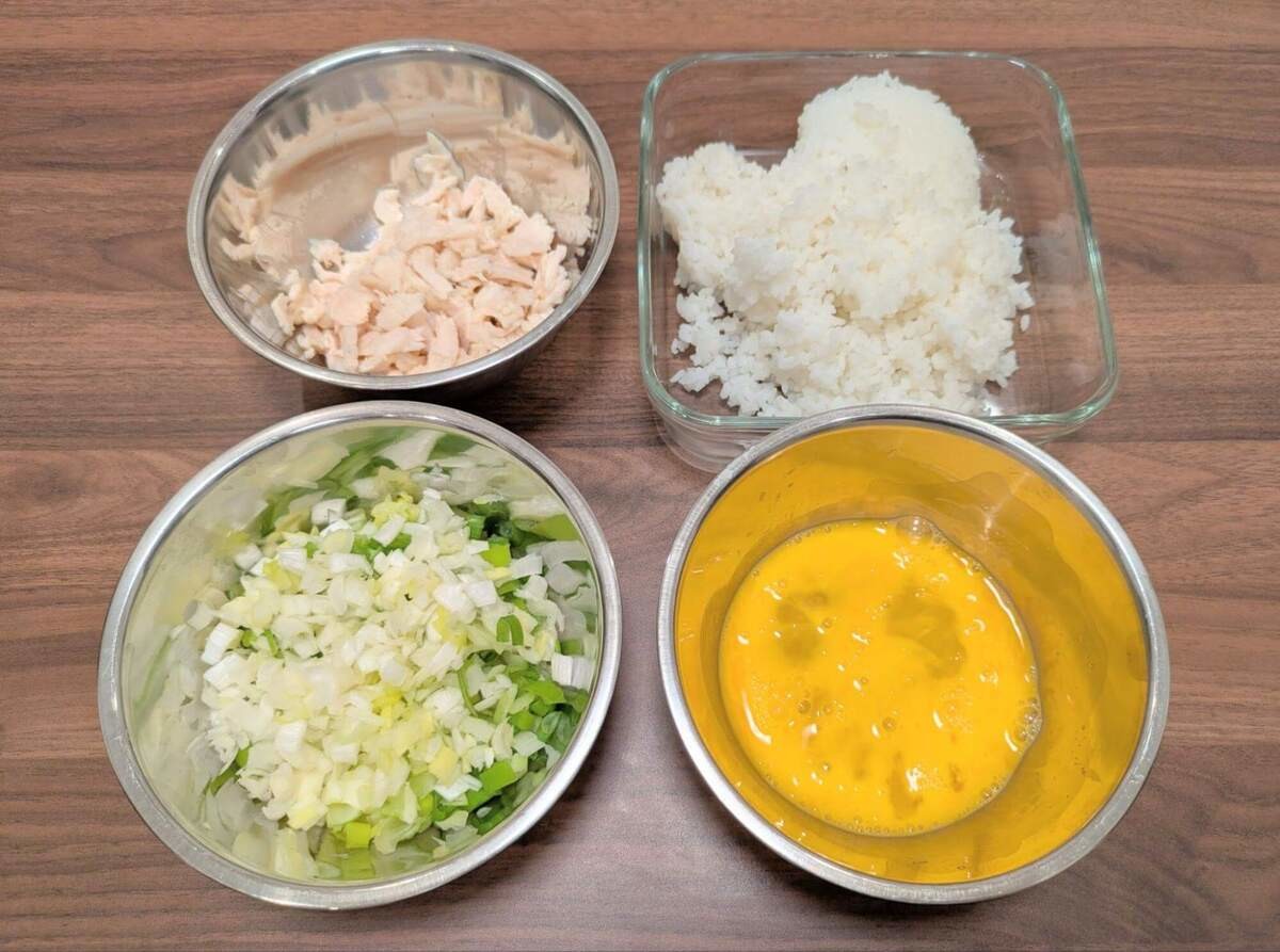 サラダチキンは食べやすい大きさにほぐし、必要であれば刻んでおきましょう。
