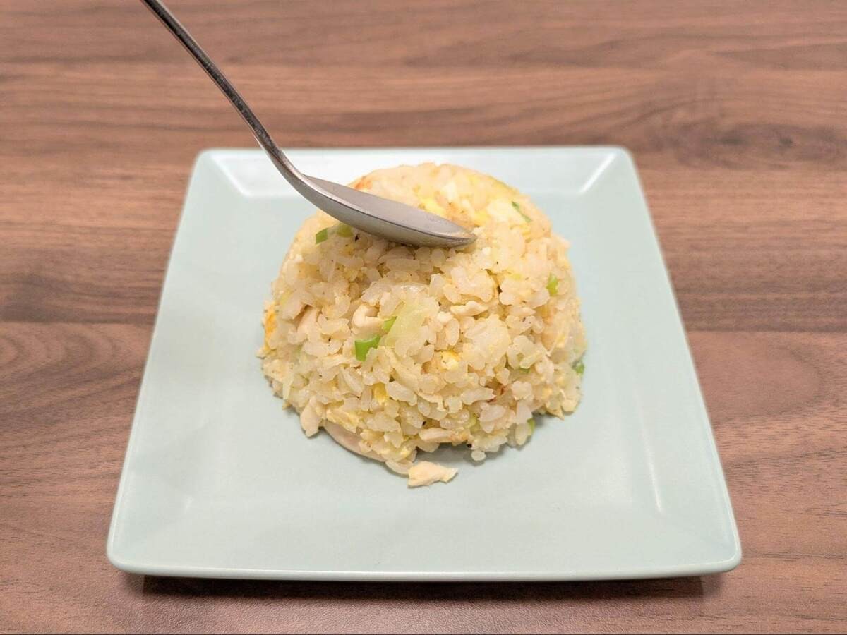 そっとお茶碗を取り外すと、無事に丸い形のチャーハンが出てきました。成功です。