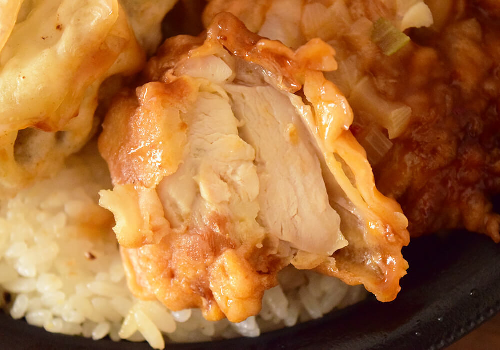 油淋鶏は甘めの味付けで、ごはんとよく合います。