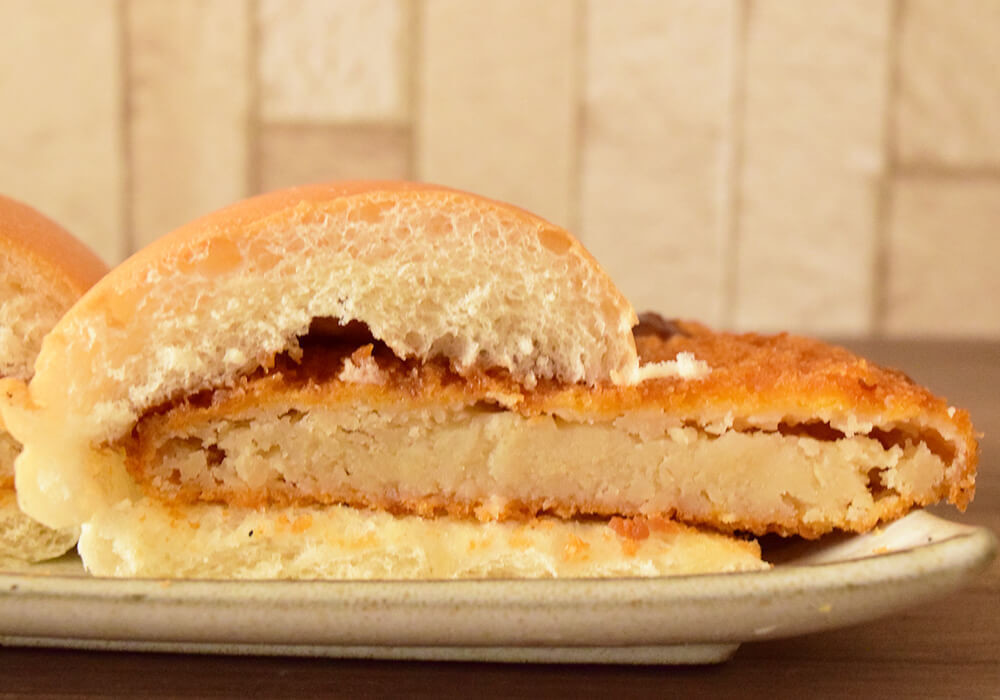 特大サイズのコロッケを大胆にサンドしたコロッケパンです。見た目のインパクトが強すぎて「これ本当にコロッケ!?(いい意味で)」と二度見してしまいました。