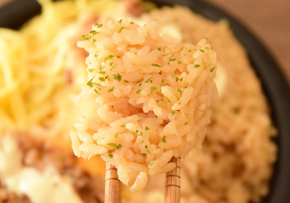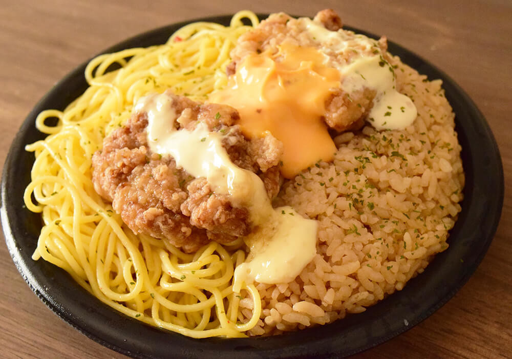 - 商品名:ドカ盛り!にんにくマヨ&チーズの豚骨めし&ペペロンチーノ