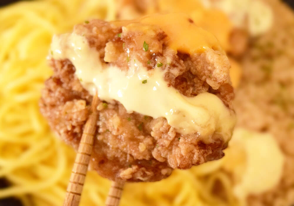 唐揚げは竜田揚げのような仕上がりなんですね。コクのあるもったりチーズと背油にんにくマヨでとんでもなくこってりしていて、これだけでもすでにお腹にずしんと来ます。