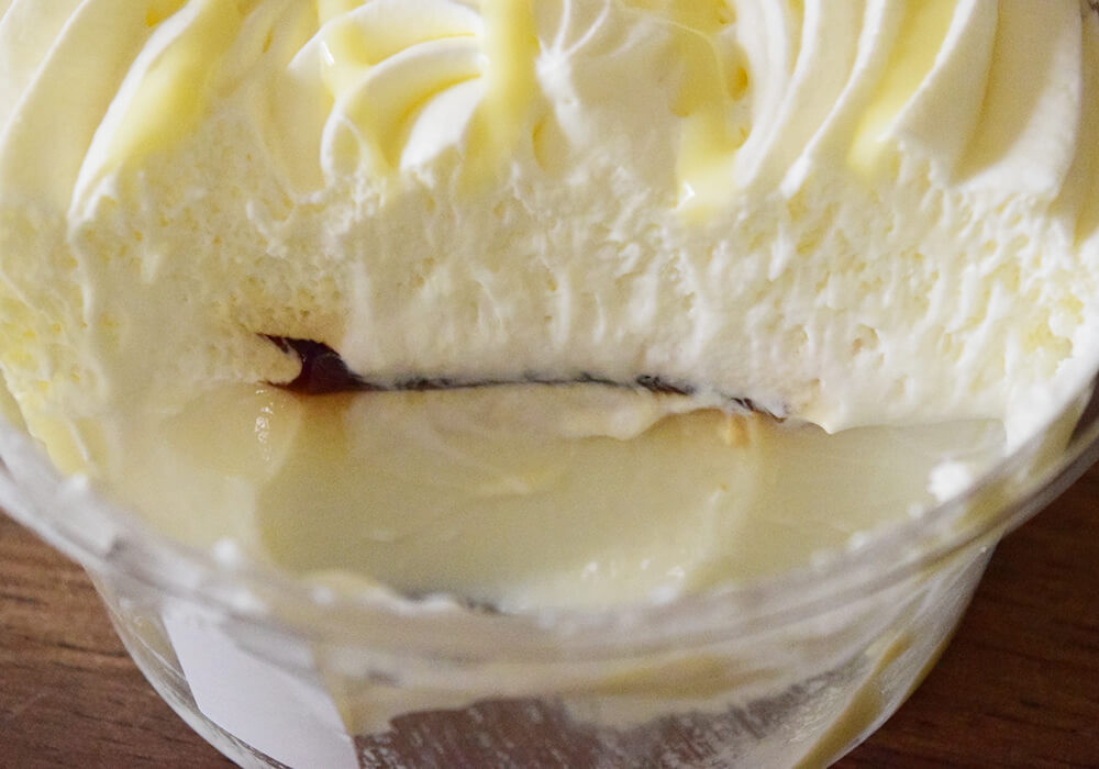 全体的にミルキーで軽やかな口当たり。途中でカラメルソースが入っていますが、ミルキーな味わいに存在感が薄らいでいます。公式まんがでは「雪のようにサラサラとなくなっていく」といったセリフがありましたが、まさにその通りですね。ボリュームがあるのですが、口の中であっという間にとろけていきますので、余裕で食べきることができますよ。