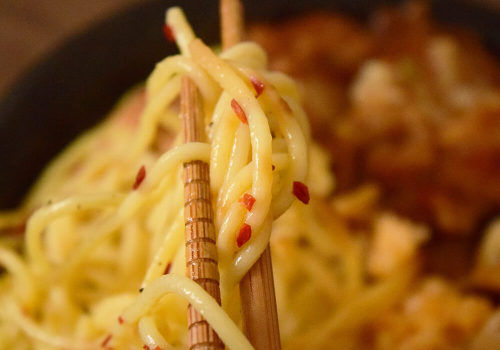 中華風ペペロンチーノは、普通のペペロンチーノと同じような仕上がりですね。ほどよくにんにくの風味がして、最後にピリッとした唐辛子の辛さが広がっていきます。