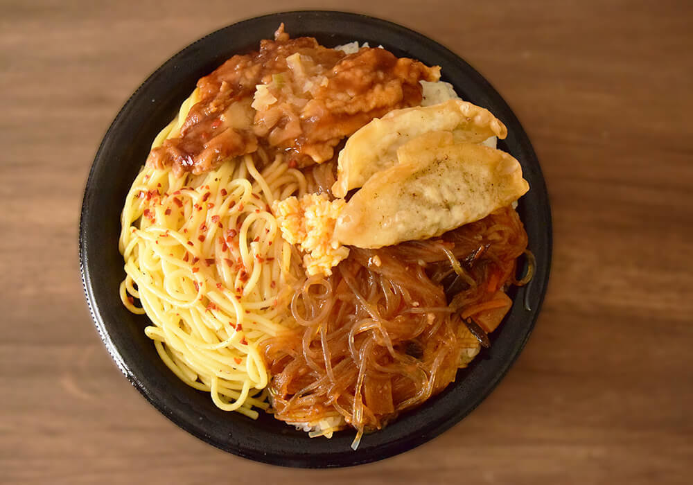 ペペロンチーノ以外の具材の下にはお米がぎっちりと詰まっており、ボリュームは文句なし。まるで 中華料理の総菜フルコースを一度に楽しんでいるような満足感があります。正直、ひとりで完食するのはかなりハードかも……。「今日は中華を思い切り食べたい!」という時には、ぴったりな一品です。