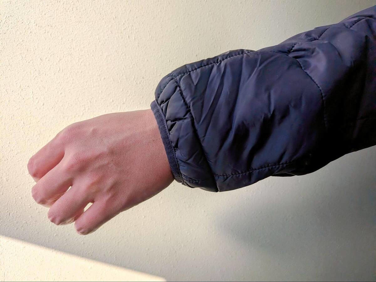 袖周りは伸縮性があり、風が入ってきにくい仕様。安いのにめちゃくちゃ考えられています!