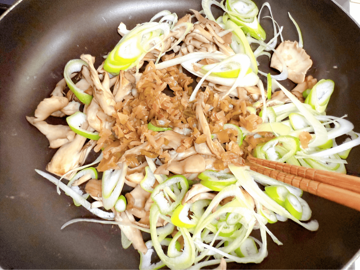 作り方④マイタケ・ネギ・ザーサイで“香りあん”を作る