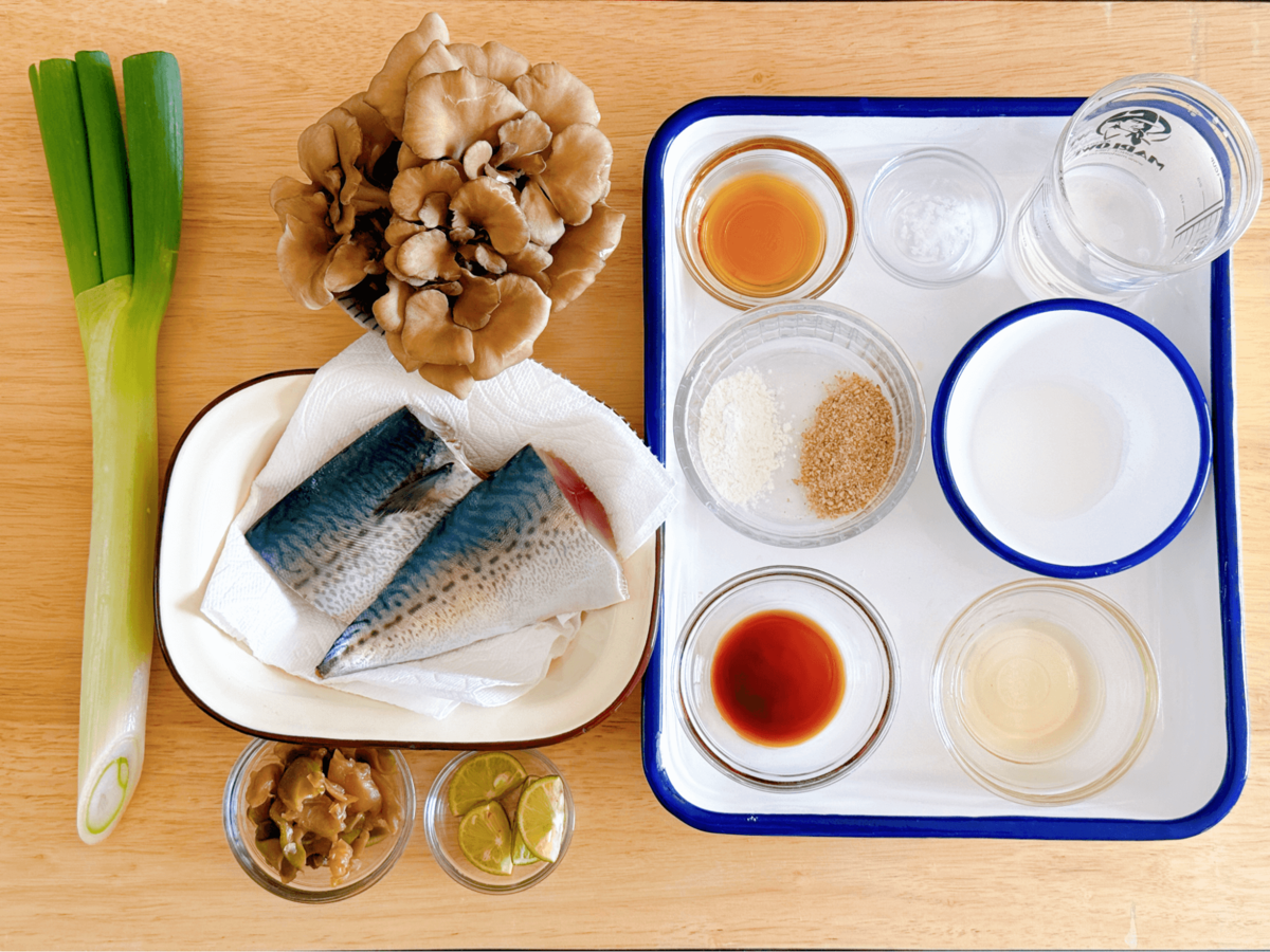 マイタケ・長ネギ・ザーサイの香りと食感の組み合わせが秀逸で、サバが主役のごちそうレシピ。