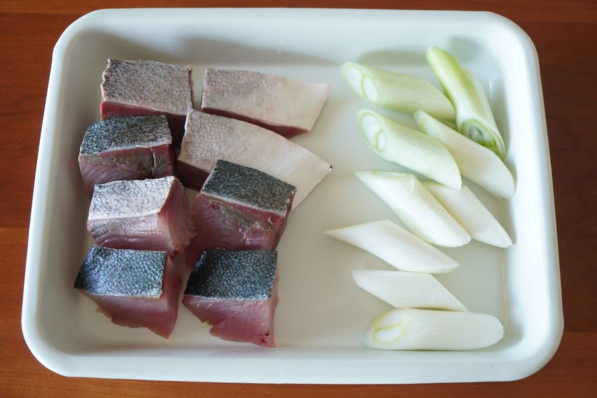 長ねぎはブリと同じ長さになるように4〜5cmの長さに切ります。