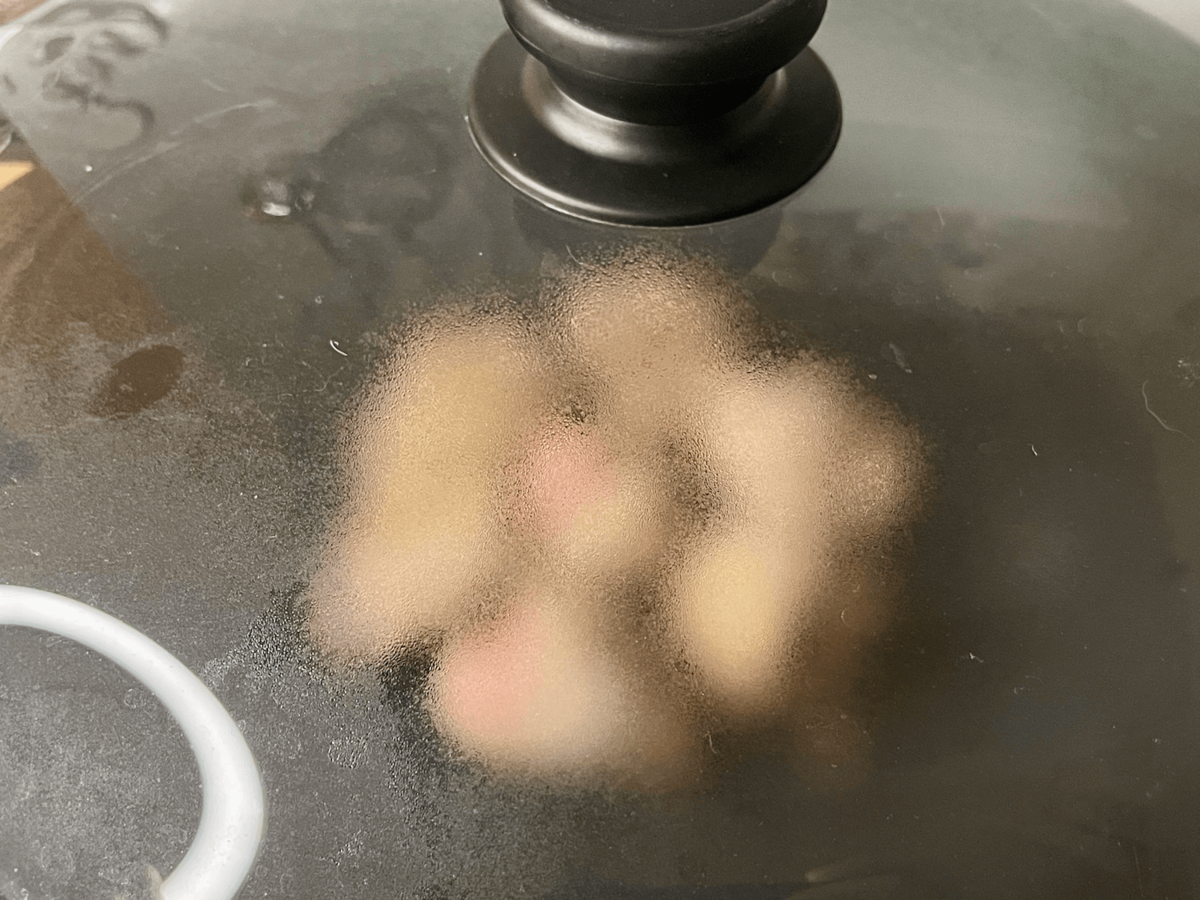弱火に落とし、蓋をして3分蒸し焼きにしましょう。