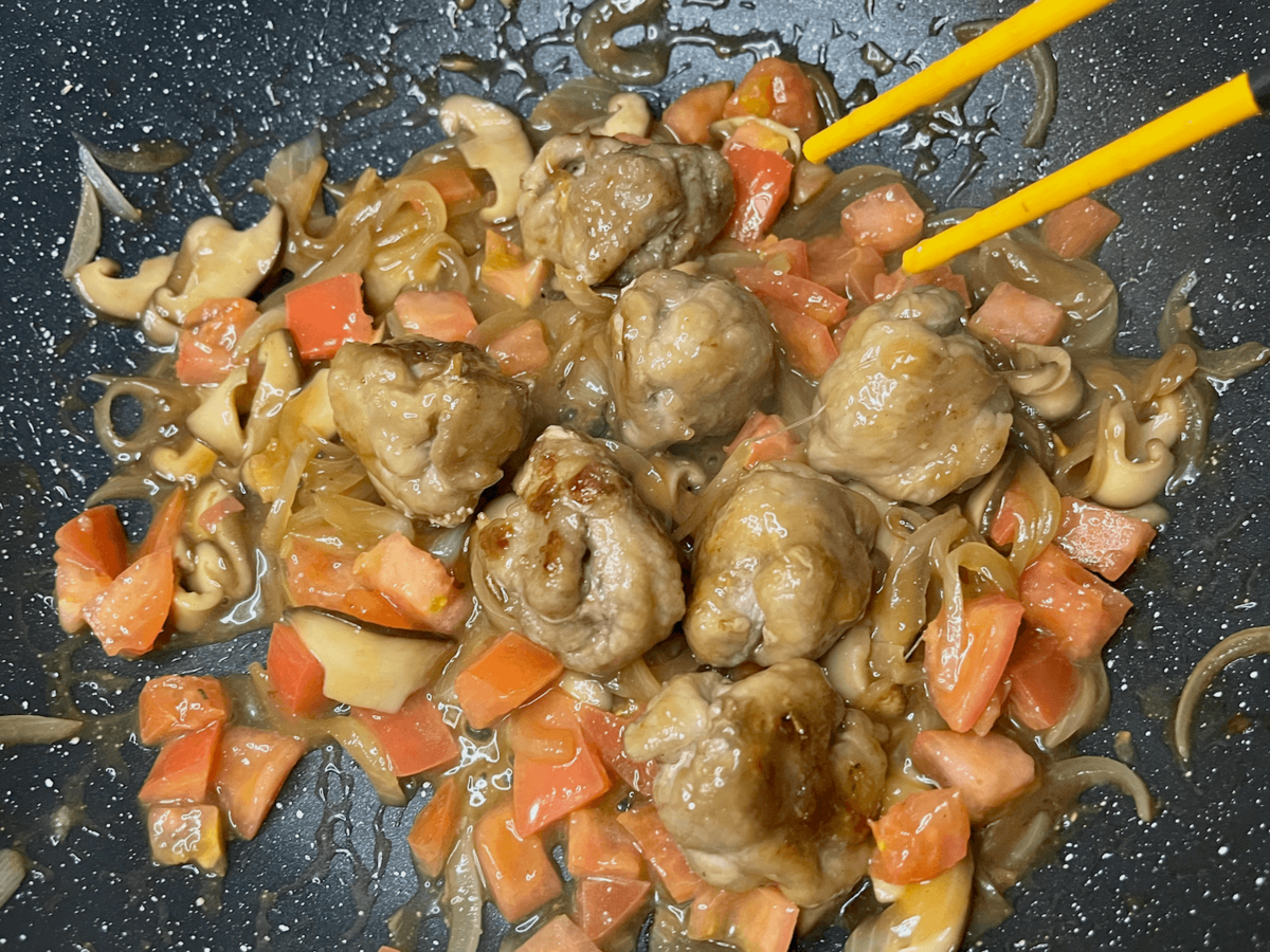 このレシピ、さらに「僕もいるよ!」と、トマトも参戦してきているのですよね。