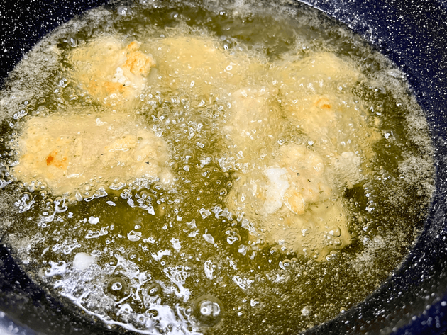 衣をつけたら、時間を置かずにすぐ揚げましょう。
