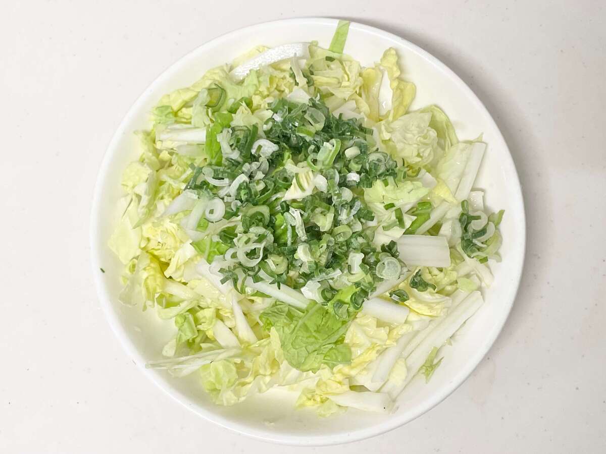 器に白菜と細ねぎを盛り付けます。