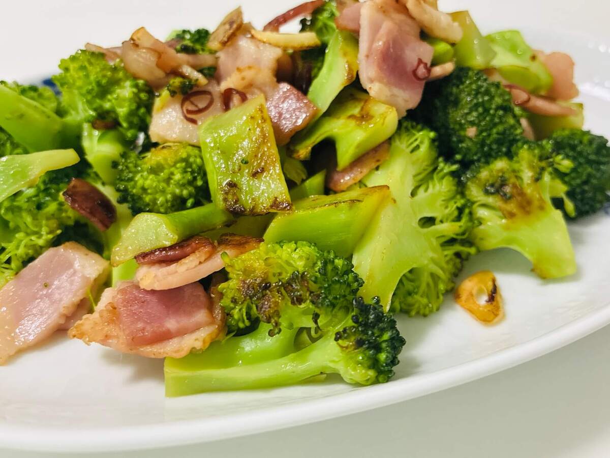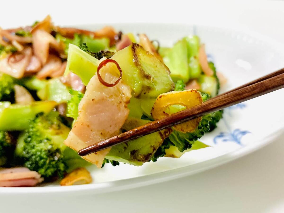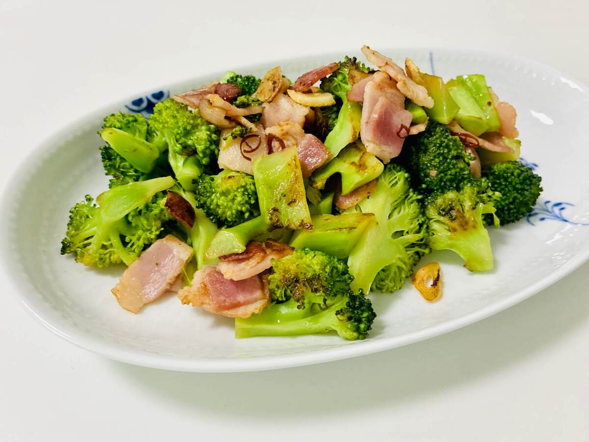 ベーコンやにんにく、鷹の爪のうま味や風味が加わったオリーブオイルが、香ばしいブロッコリーにしっかり絡まって……うんま~い♡