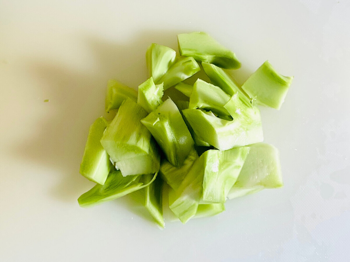 茎の部分は食べやすいサイズにカットしてください。
