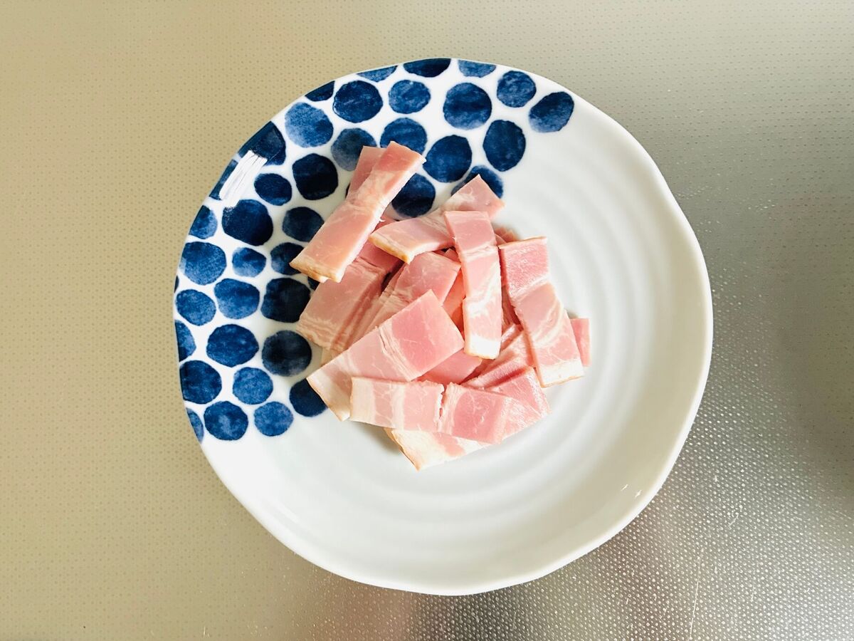 ベーコンは約1cm幅にカットします。