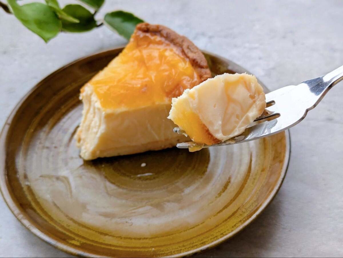 ベイクドチーズケーキは冷凍庫から出したてだとちょっとかたいので、冷蔵庫で30分ほど置いて半解凍状態で食べるのがおすすめです。