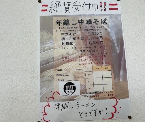 今年は12月25日が予約最終日。12月30日にお店の営業をしながら、年越し中華そばの受け渡しをしてくれるそうです。