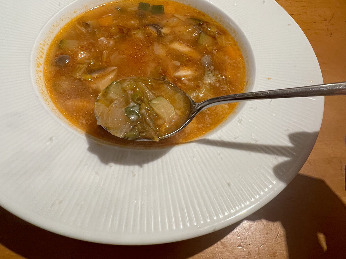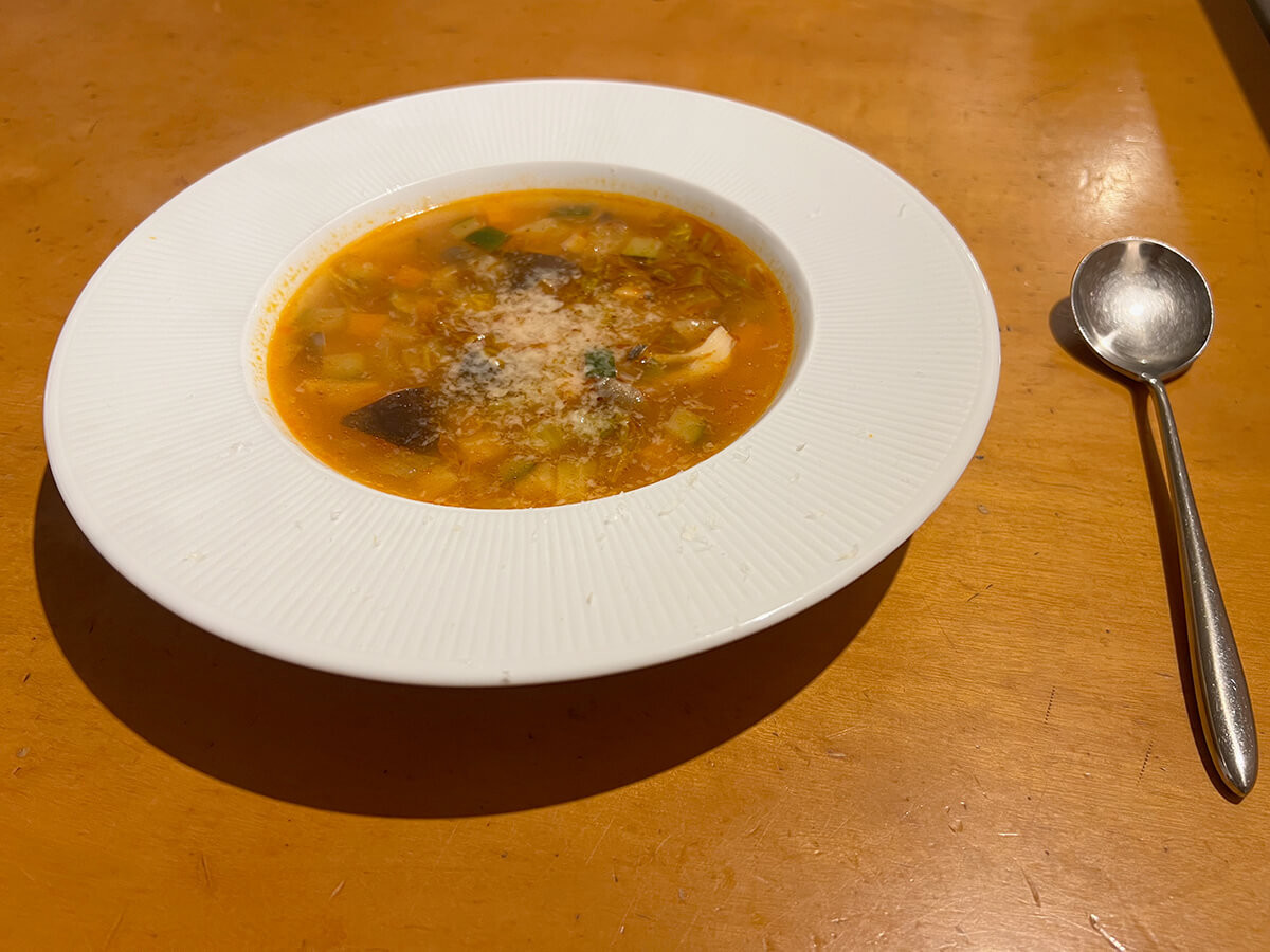 ミネストローネ独特のほんのりとしたトマトの酸味を感じます。