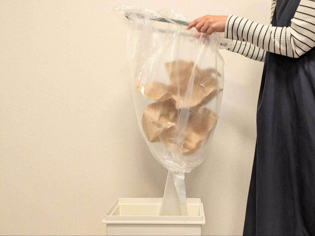 ごみ袋とごみ袋がつながっているのが想像以上に便利!使ってみて、ごみ袋を1枚だけ取り出すという動作が意外と手間だったと気づきました。