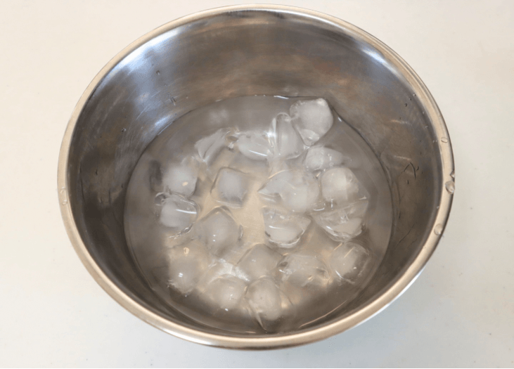 生クリームを泡立てるときのように、ボウルに氷水を張って、その上にまた別のボウルを重ねます。