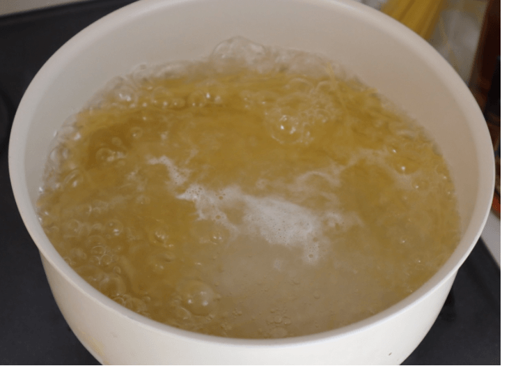 続いて、鍋にお湯を沸かして塩を入れ、パスタを茹でましょう。