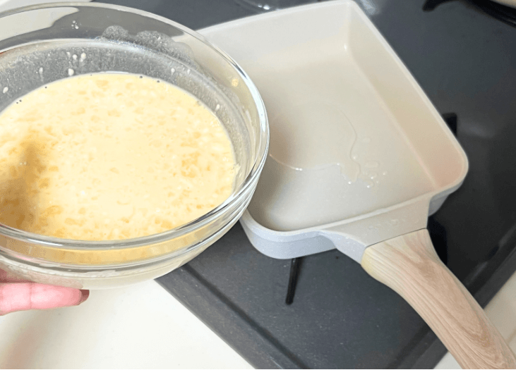 卵焼き器にサラダ油を入れ、中火で熱します。