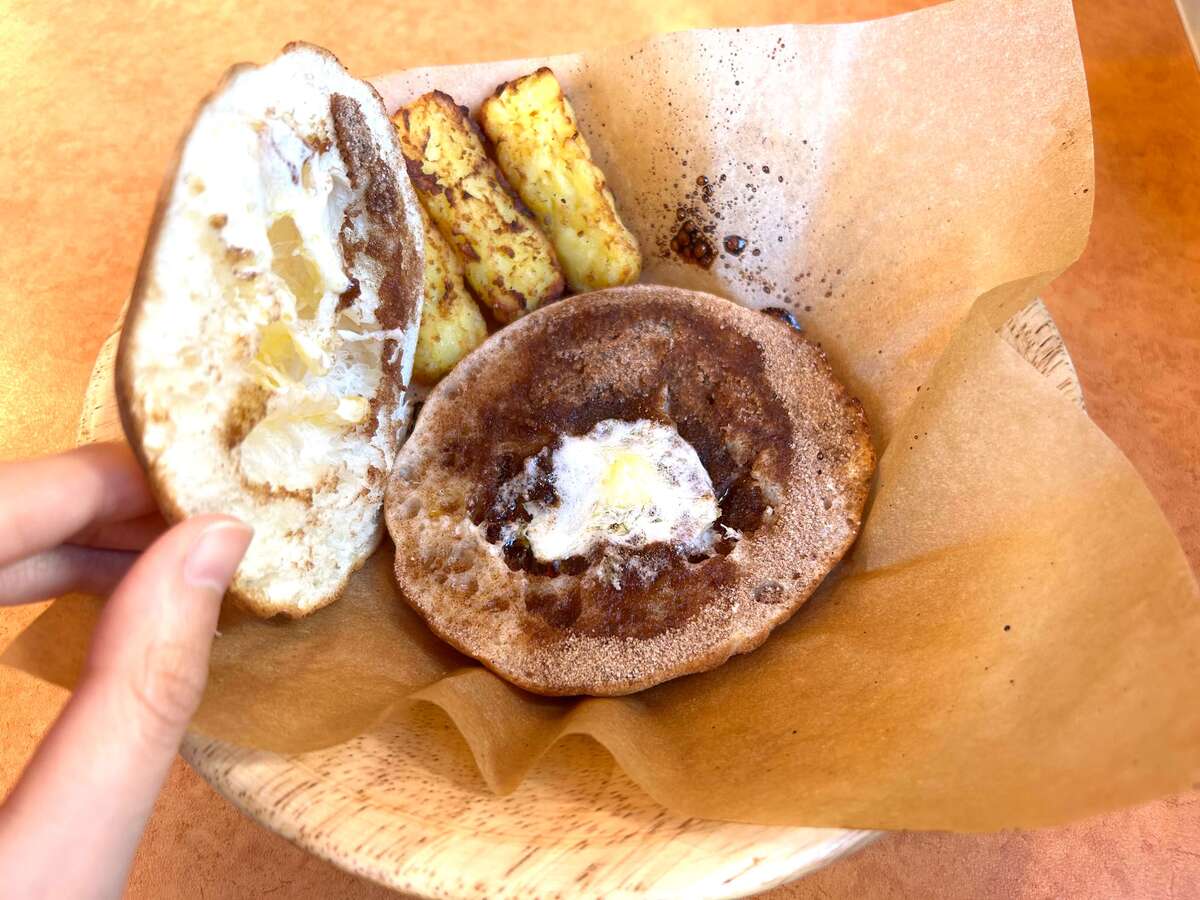 通常のメニューではフォッカチオにシナモンシュガーがかけられている商品が発売されていますが、バターをかけるとより美味しく感じますね!