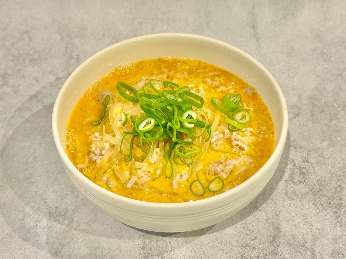 小麦粉の麺よりやはりあっさり食べられて罪悪感が少ないですね。濃厚な担々スープの味とマロニーのあっさり麺の相性が抜群!