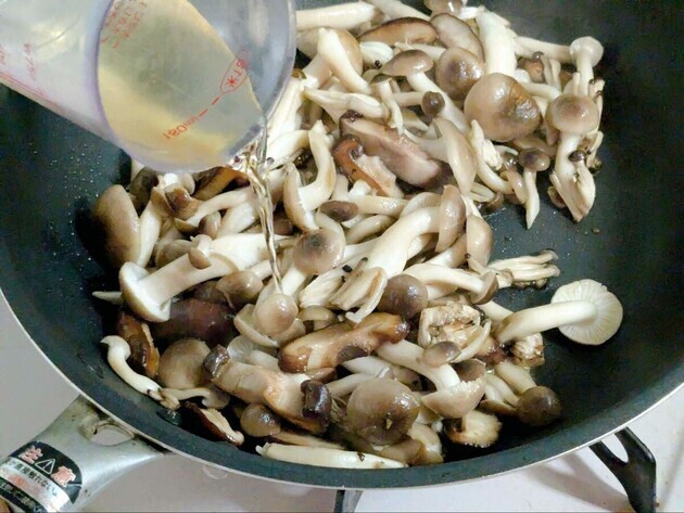 しめじは石づきを切り落とし、バラバラにほぐしておいてください。