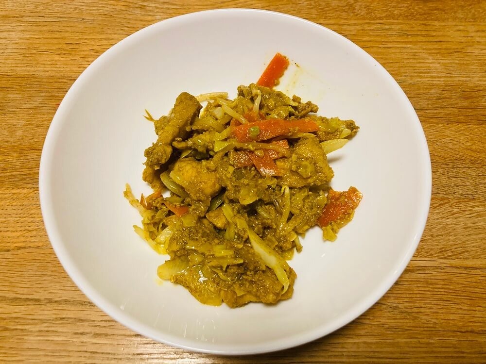 ざく切りにしたキャベツやニンジンと一緒に炒めるだけ。おかずはもちろん、おつまみにもおすすめです。ピリッとしたスパイスがきいているものの、ヨーグルトのまろやかさもありご飯が進みました!