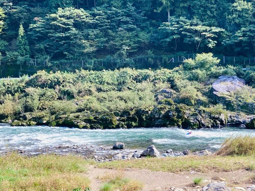 川沿いに立つ「道の駅美並」。敷地からは壮大な長良川を見ることができます。カヤックの練習をしている人もいました。