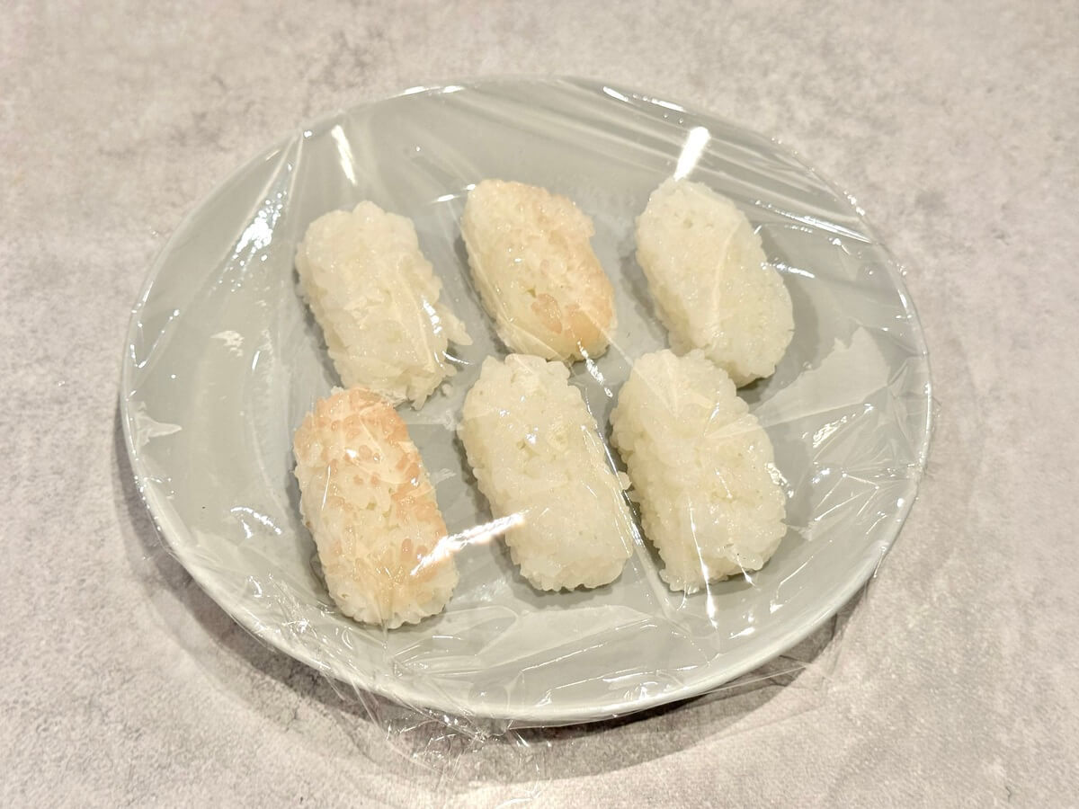 ほんのりあたたかく人肌程度のシャリになりましたよ。こうすることで「握りたての少しあたたかいシャリ」が実現できるんですね!