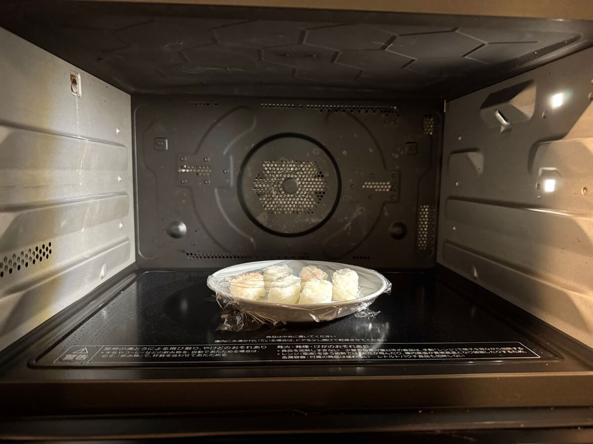 手順③シャリを電子レンジで温める