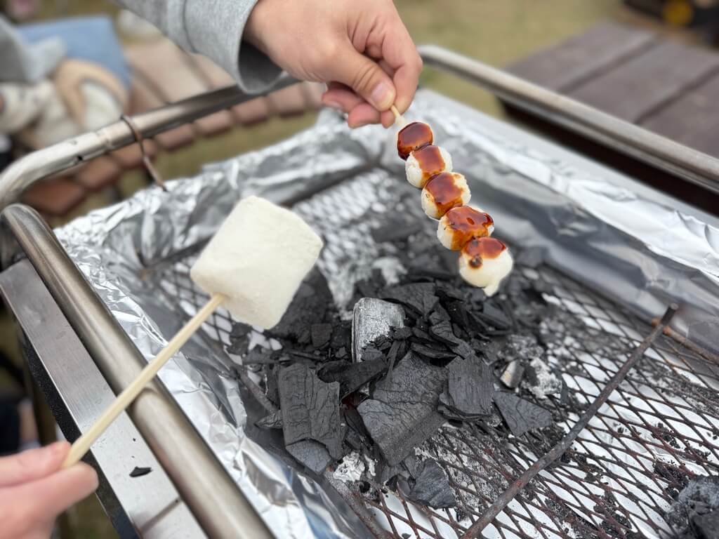 この日はジャンボマシュマロ焼き&みたらし団子焼き体験が開催されていました!こちらは土日・祝日に開催(14:00まで)されることが多いので、ぜひチェックしてみてください。