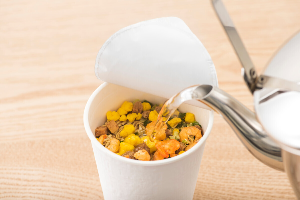 カップラーメンなどを作り終わった後に、耐熱のガラスやステンレスなどの容器に移し替えるだけでOK。