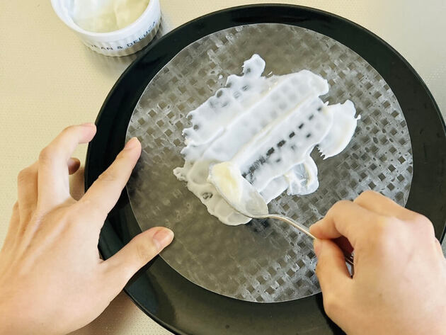 ライスペーパー1枚につき、ヨーグルト大さじ1程度を使います。