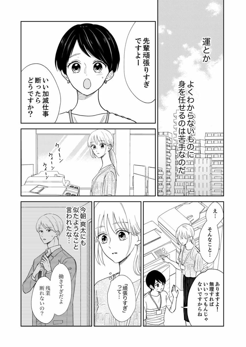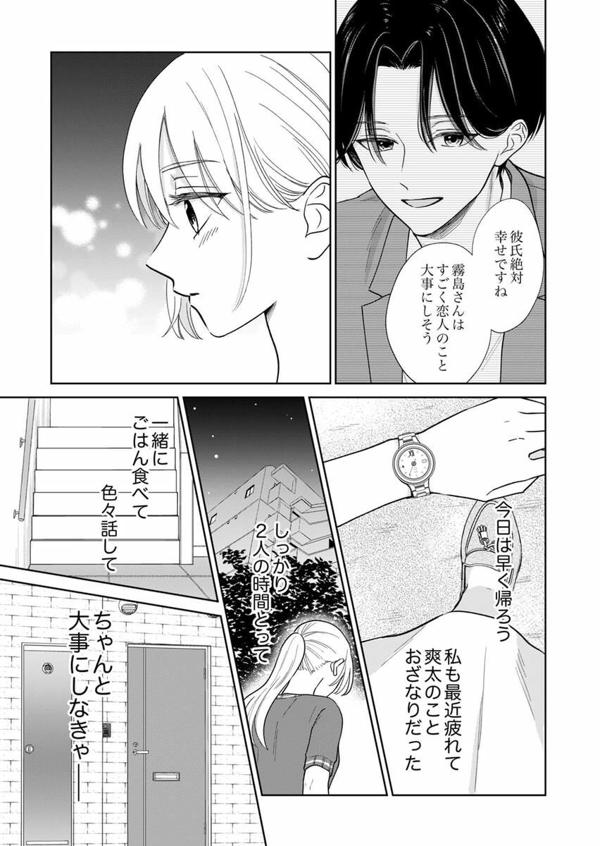 真面目で頑張り屋な霧島香澄は、日々頼まれた仕事を完璧にこなしていたものの、社内恋愛中の爽太との同棲生活にはすれ違いが生じていた。