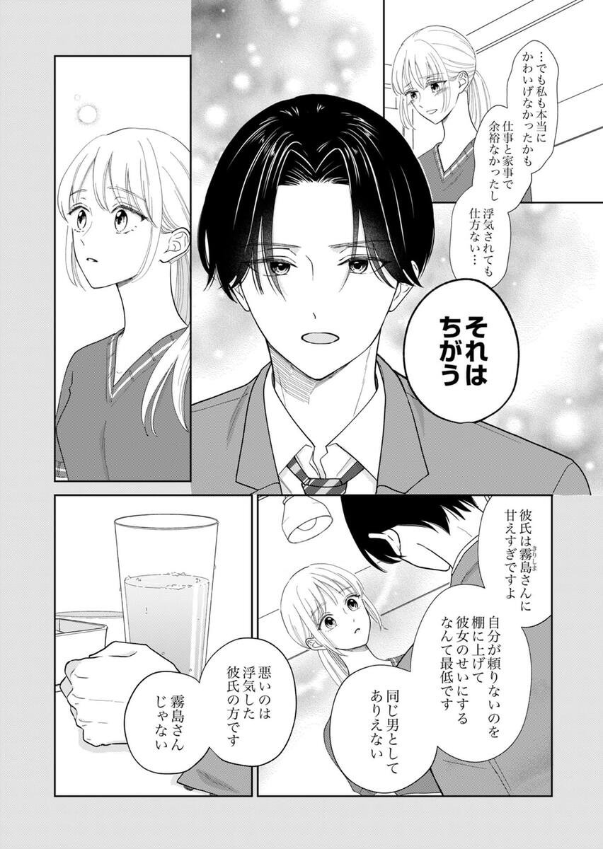 後輩に彼氏を寝取られてどん底…。「浮気されても仕方ない…」弱気発言を同僚がキッパリ否定【僕のことだけ見れてばいいのに④】