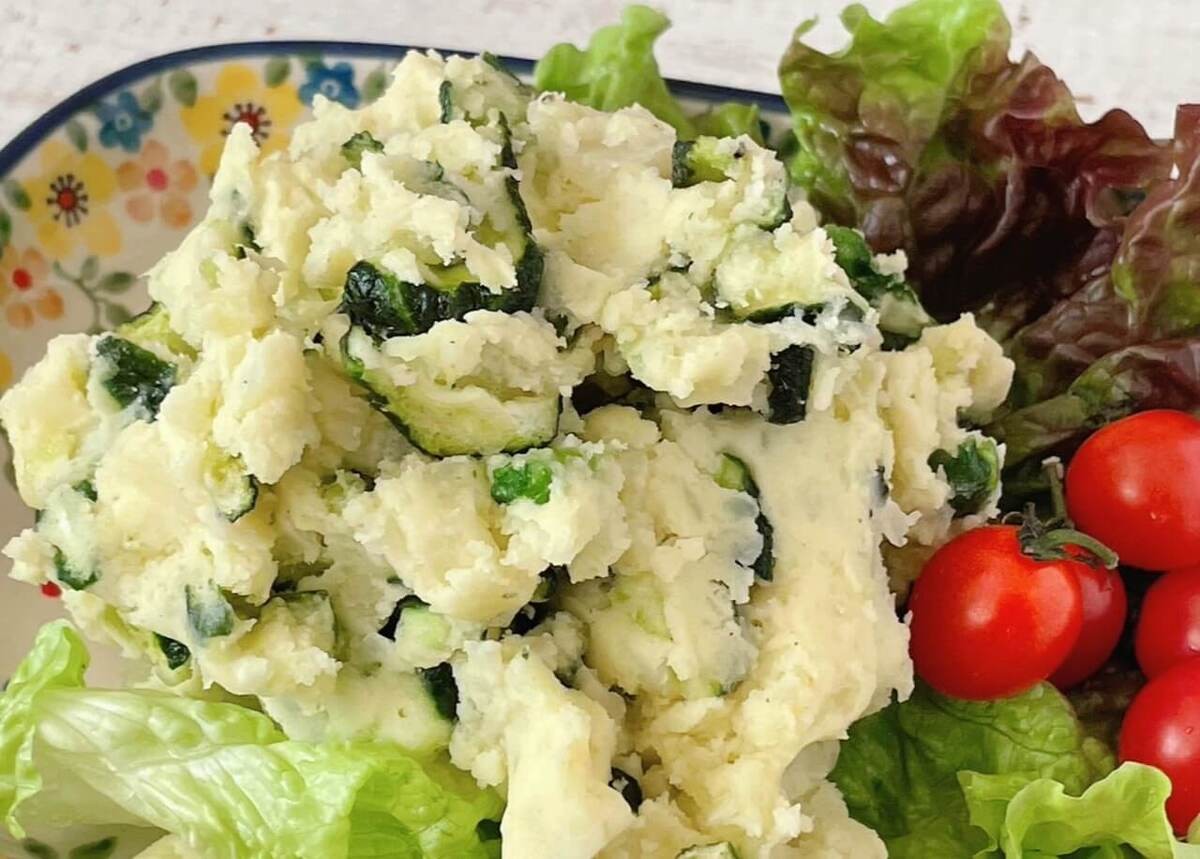 ジャガイモにピクルス風味がしっかりと移り、生のきゅうりとは違う歯ごたえが楽しめるポテトサラダになります。まさに、 きゅうりチップスの食感を楽しむポテサラ!