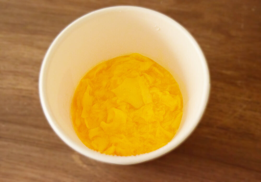 オム玉子は見た目でもわかるほどに、とろっとろ。半熟感のあるオム玉子をトッピングして食べるのが公式の食べ方のようです。