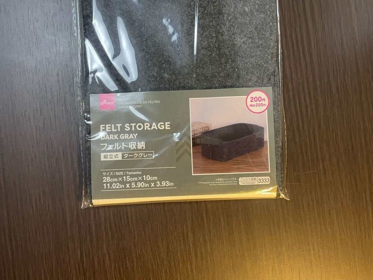 3つ目は、使わないとき場所を取らない「フェルト収納組み立て式(色:ダークグレー/税込み220円)」です。