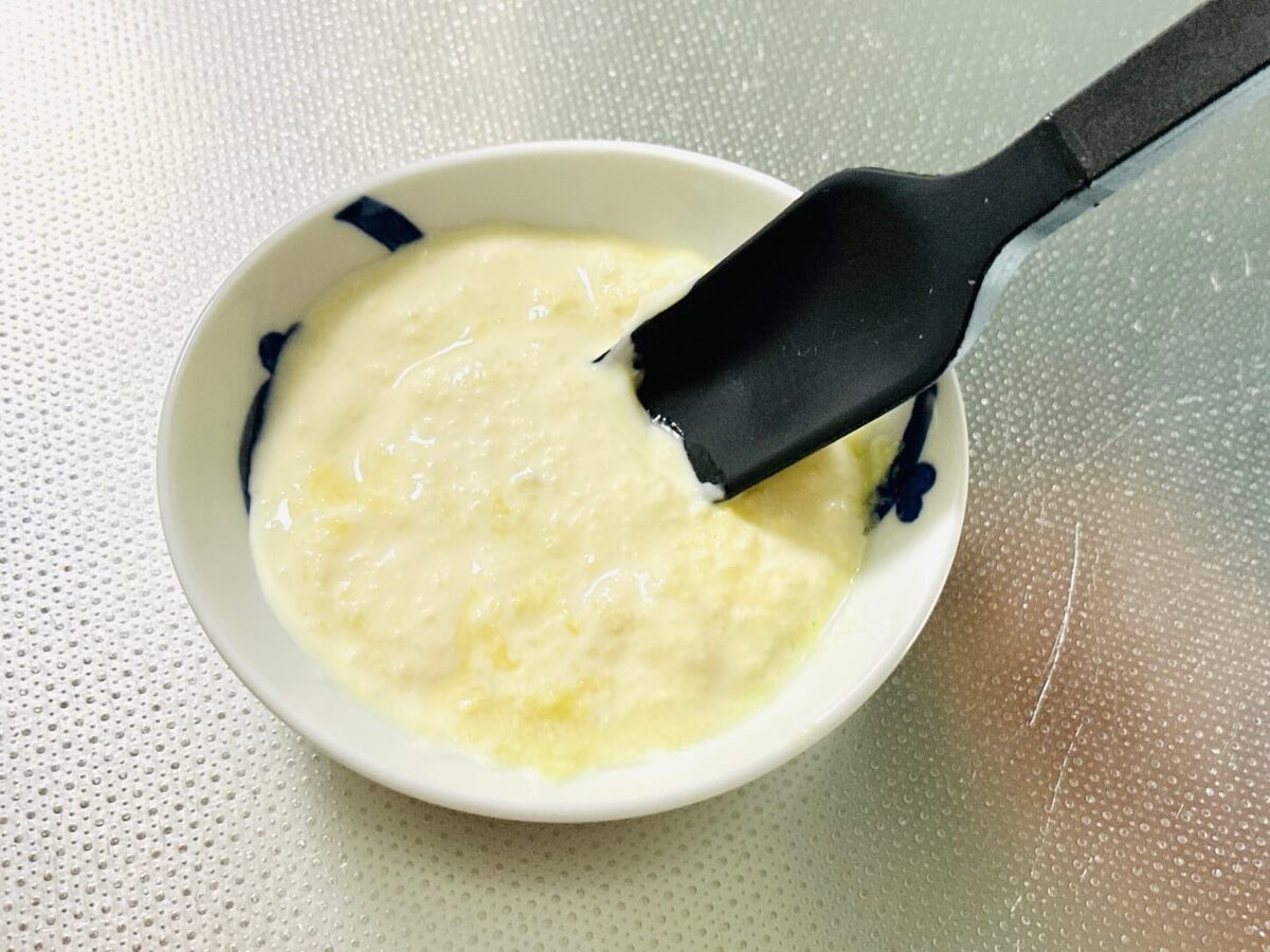 作り方① マヨネーズとおろししょうがを混ぜ合わせる