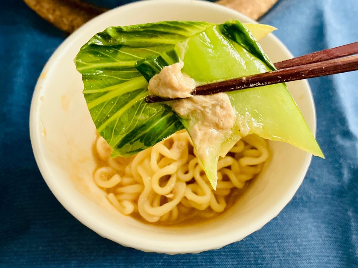 味付けされたツナと一緒に麺をすすると……濃厚で、うんまっ♡